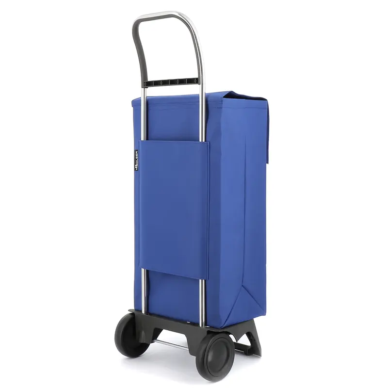 Сучасна сумка-візок Rolser Neo LN Joy Azul (NEO001-1026) стане надійним супутником при поїздці за покупками до торгового центру або на ринок за продуктами. Фірмове алюмінієве шасі візка дозволяє транспортувати вантаж вагою до 40 кг. Розкладна основа виконана з міцного термостійкого пластику. Пара литих ультралегких коліс діаметром 13,5 см сприяють відмінній маневреності та плавному коченню по нерівностях. Внутрішня частина рукоятки має пластикове покриття для комфортного транспортування сумки-візка в холодну пору року. Міцний поліестеровий матеріал сумки захистить вміст від дощу та снігу. Сумка знімна, має зручну широку горловину. Верх сумки накритий захисним клапаном. На дні сумки передбачене жорстке вставне пластикове дно. Візок дуже мобільний і стійкий, він легко розкладається та складається.