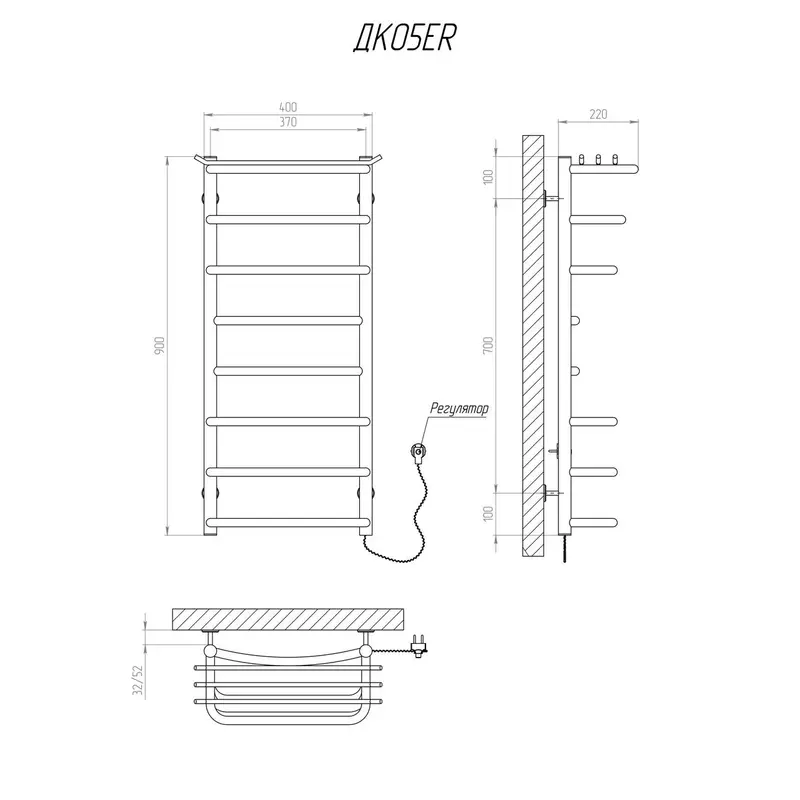 Сушарка для рушників KOSSER Канна 900х400/8 ЕR регулятор.