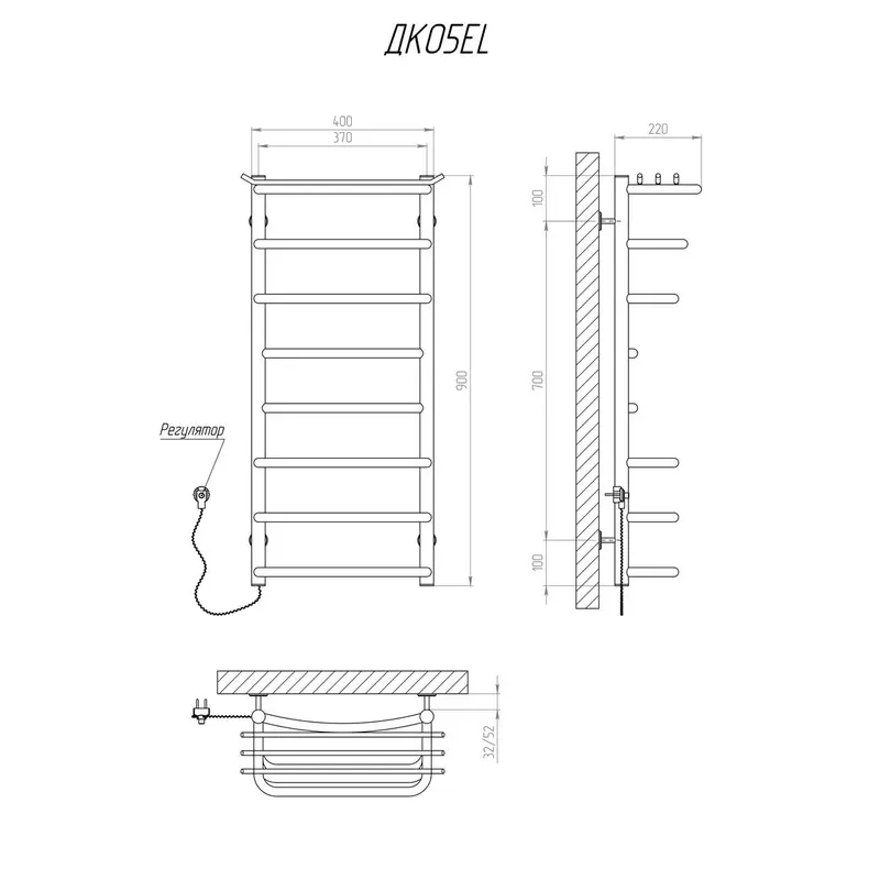 Сушарка для рушників KOSSER Канна 900х400/8 EL рег.