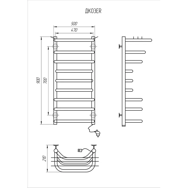 Сушарка для рушників KOSSER Канна 900х500/9 ЕR рег. чорний