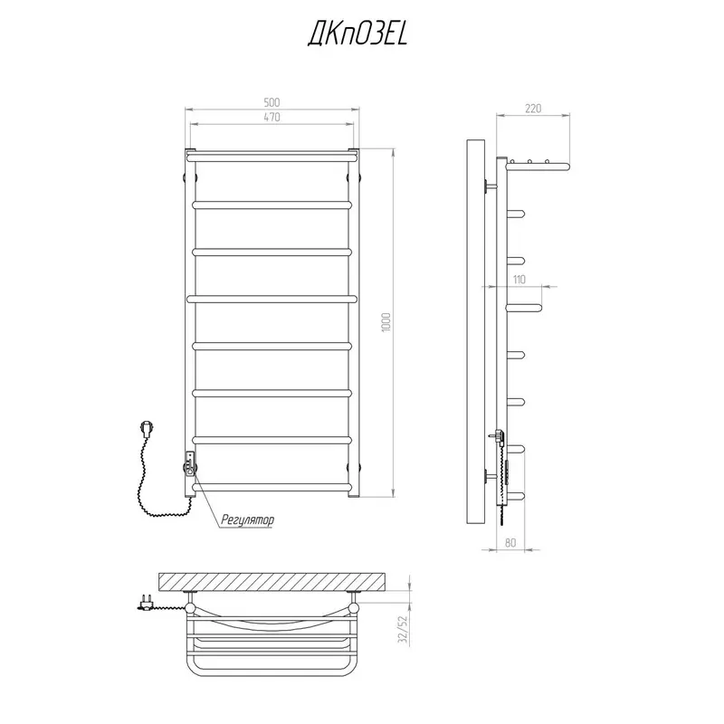Сушарка для рушників KOSSER Каскад із полицею 1000х500/8 EL