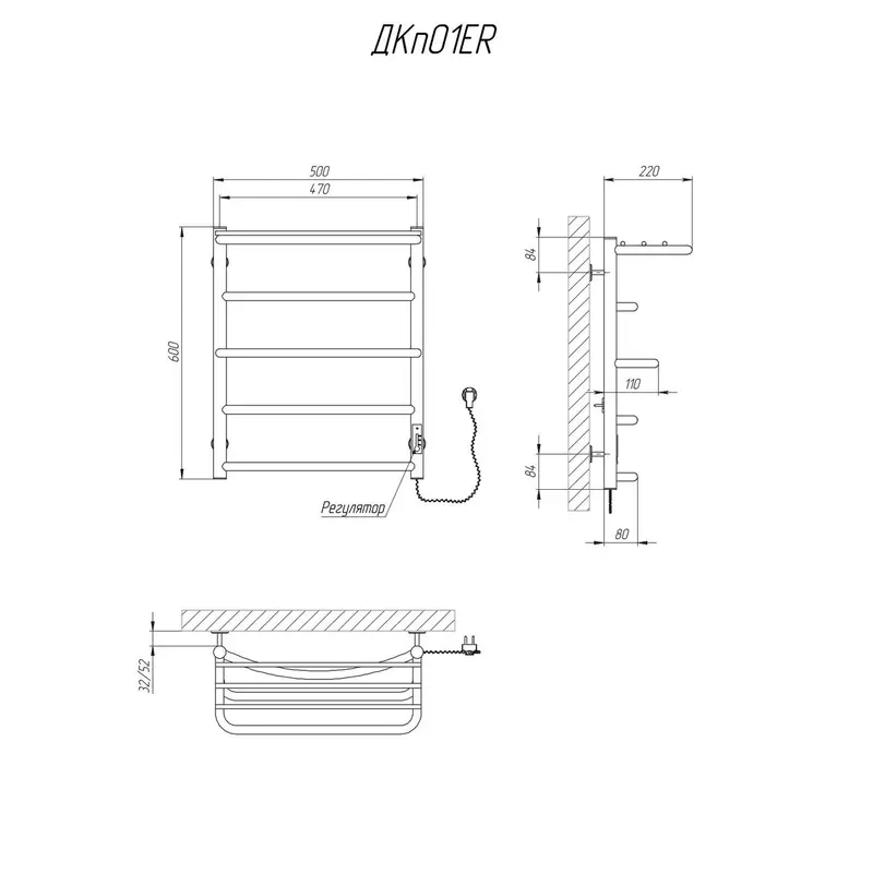 Сушарка для рушників KOSSER Каскад із полицею 600х500/5 ER тайм.