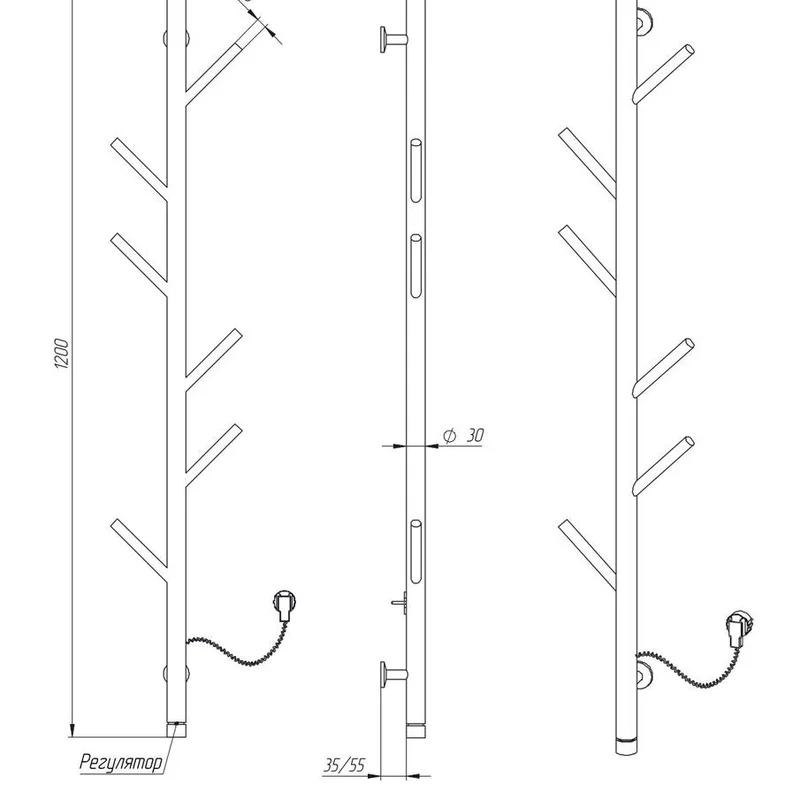 Сушарка для рушників KOSSER Стійка 1200х30 ELR Чорна регулятор крутилка