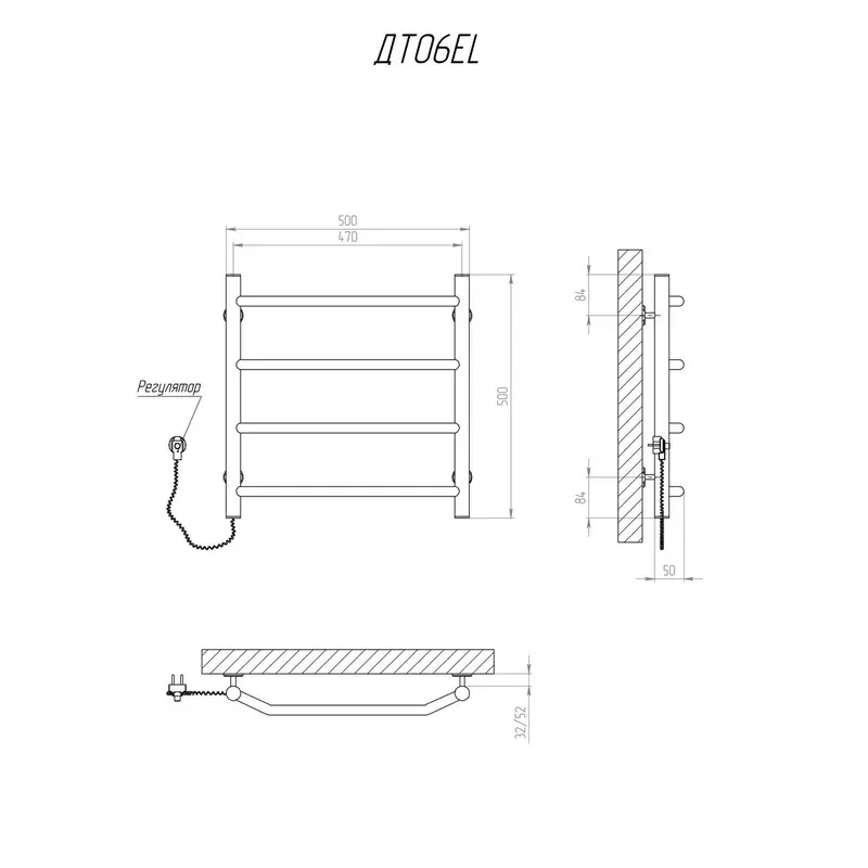 Сушарка для рушників KOSSER Трапеція 500х500/4 EL рег.