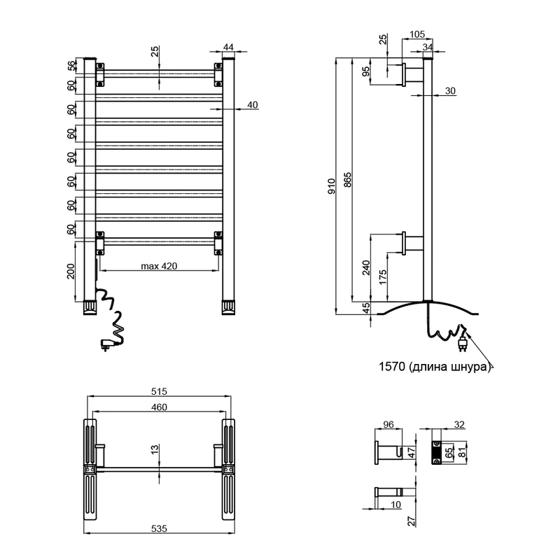 Сушарка рушників електрична Qtap Arvin (SIL) 32708 з таймером