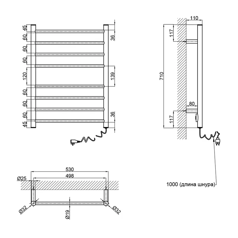 Сушарка рушників електрична Qtap Evia (WHI) 11112R