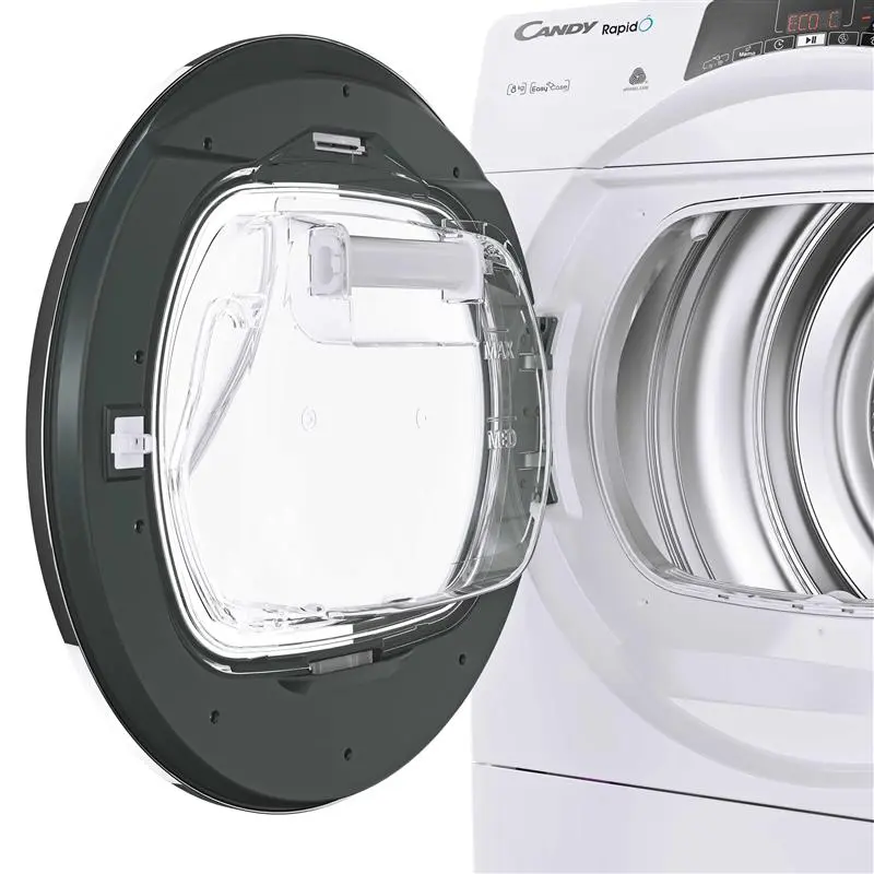RapidO RapidO – це найшвидша та зручніша у використанні сушильна машина, що забезпечує максимально швидке та якісне сушіння за допомогою 7 швидких програм тривалістю менше 1 години. Ваші вовняні речі в хороших руках Не турбуйтеся про те, що ваші вовняні речі можуть сісти після сушіння: ваша сушильна машина знає як поводитися з вовною та іншими делікатними тканинами. Просто встановіть програму сушіння вовняних виробів, сертифіковану Woolmark. Завдяки особливому обертанню барабана та розумному контролю температури ваші речі будуть висушені максимально акуратно. Максимальна гнучкість З функцією відкладеного запуску вам більше не доведеться витрачати час на сушіння. Ви зможете почати сушіння у зручний для вас час, вибравши будь-який час протягом 24 годин. Ви можете почати сушіння вночі, коли вартість електроенергії менша, або коли ви на роботі, щоб до вашого приходу одяг уже був сухим. Світ функцій, що підключаються ЗА допомогою програми simply-Fi і підключення через Wi-Fi ви отримуєте доступ до широкого вибору розумних функцій: віддалене керування, поради по сушінню білизни, статистика використання, контроль за станом машини і самодіагностика несправностей Дистанційне керування Як висушити ваші улюблені джинси чи улюблену сорочку? Ви можете керувати процесом сушіння за допомогою голосу, використовуючи смартфон та програму Simply-Fi. Ваш улюблений цикл у вас під рукою! Зберігайте ваші улюблені налаштування! З новою функцією «Пам’ять», коли ви оберете найкращі налаштування для кожного режиму сушіння, ви зможете одразу їх зберегти. Заощаджуйте сили завдяки комфортному завантаженню та розвантаженню речей Розташований вище звичайного великий завантажувальний люк і зручна панель керування Touch Console в сушильній машині Candy RapidO дозволяють полегшити процес завантаження та вивантаження білизни. Знайдіть ідеальний режим прання Ви можете взаємодіяти з сушильною машиною через додаток Candy Simply-Fi і отримувати доступ до розширених можливостей, таких як запуск більше 20 додаткових програм сушіння, швидкий доступ до часто використовуваних програм, створення власних режимів сушіння. Запобігання зминанню Candy знає, як важливо заощаджувати ваш час, і тому ми створили функцію супер легкого прасування. Спеціальний сенсор проаналізує ситуацію та допоможе створити ідеальну вологість усередині барабана, також скоригувавши обертання барабана для утворення найменшої кількості складок та заломів, щоб ви змогли погладити ваш одяг вдвічі швидше. Вдвічі менше складок, удвічі менше часу на прасування!