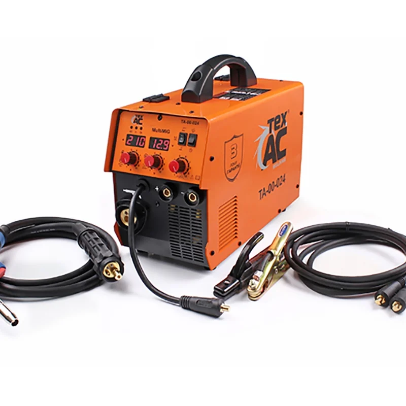 Полуавтоматический сварочный аппарат Тех.АС ТА-00-024 работает в трёх режимах. Диапазон сварочного тока в режиме MIG/MAG/FLUX - 30-210А, диаметр используемой проволоки от 0,6 до 1,2мм. В режиме MMA диапазон сварочного тока - 30-180А, диаметр используемых электродов от 1,6 до 5,0 мм. В режиме TIG DC-LIFT диапазон регулирования сварочного тока - 20-190А.