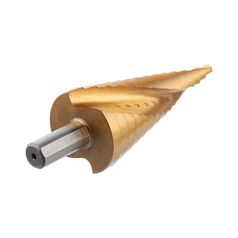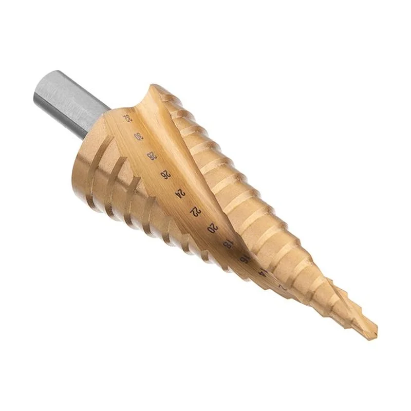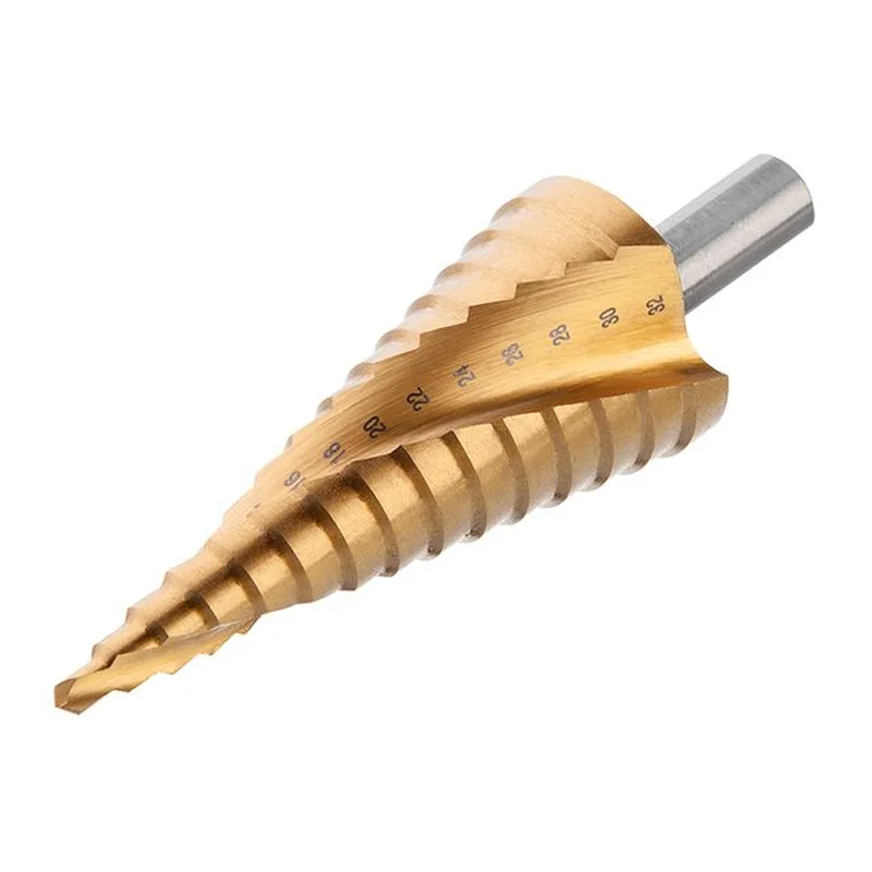 Ступінчасте (крокове) свердло – відмінний помічник для делікатного свердління отворів у листових металах і пластику. Ступінчаста структура дозволяє свердлити отвори різного діаметра 4-32 мм, без заміни різального інструмента.