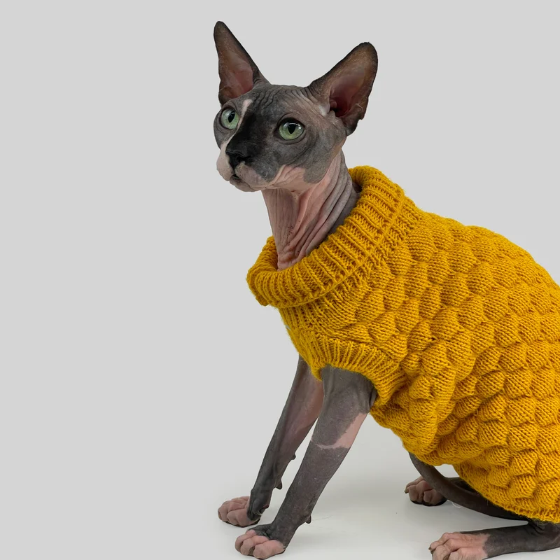 Светр для котiв в'язаний cоти гірчиця SC-7