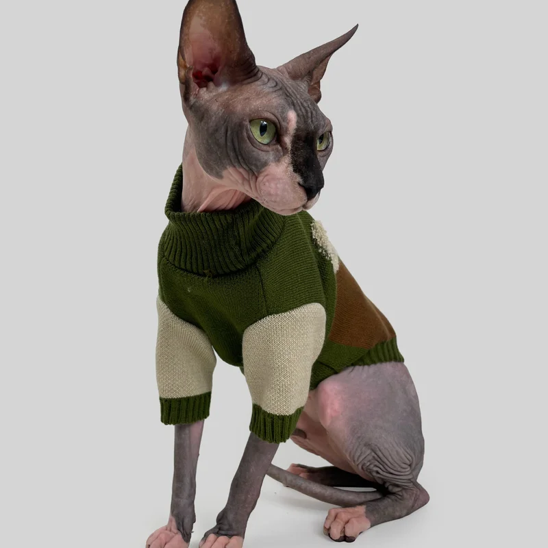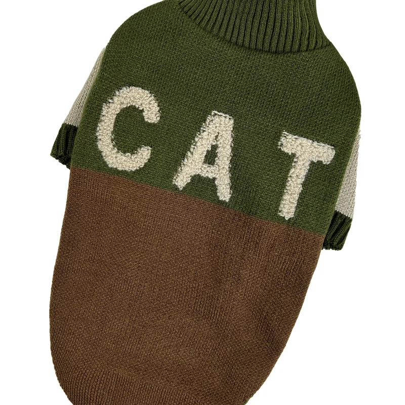 Светр для котiв в'язаний CAT коричневий хакі SC-11
