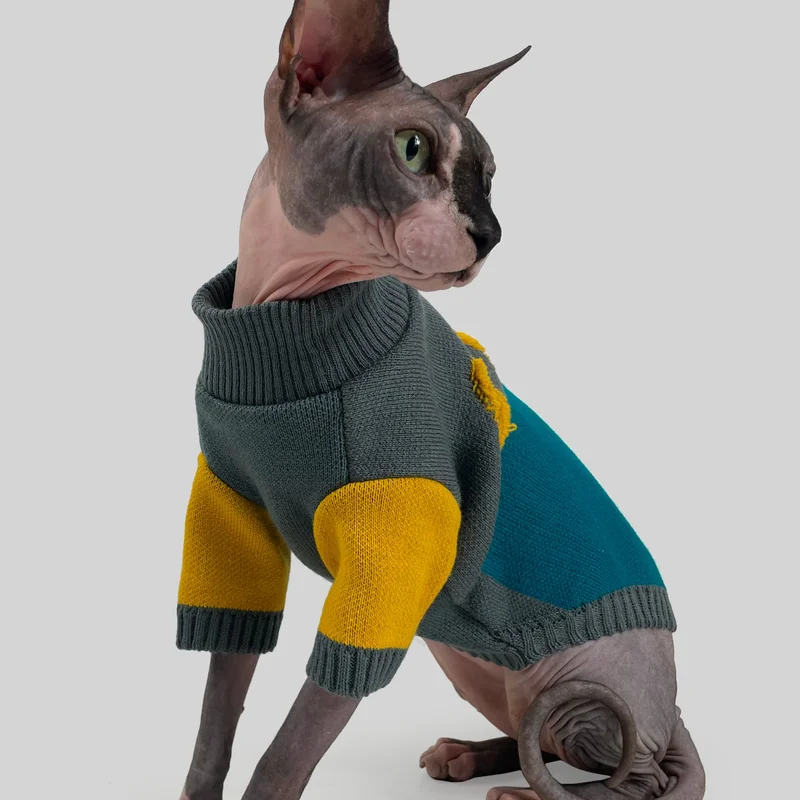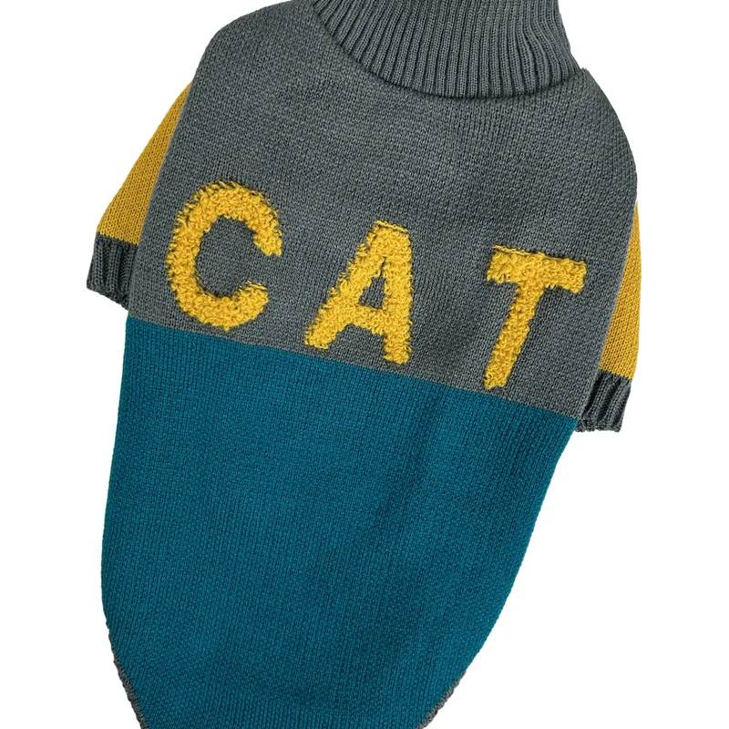 Светр для котiв в'язаний CAT зелено сірий SC-10