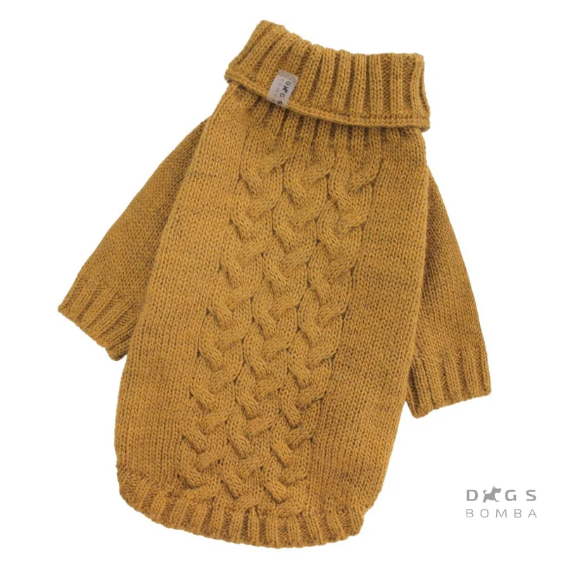 Светр в'язаний Косичка гірчиця Y-227