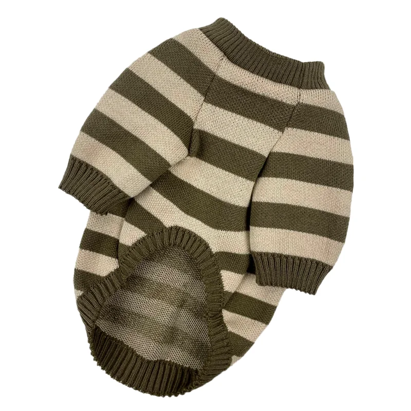 Светр в'язаний смугастий хакі беж із серцем Y-274