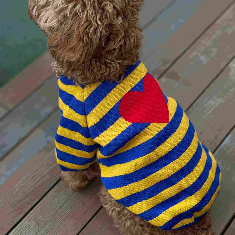 Светр в'язаний смугастий синьо жовтий із серцем Y-275
