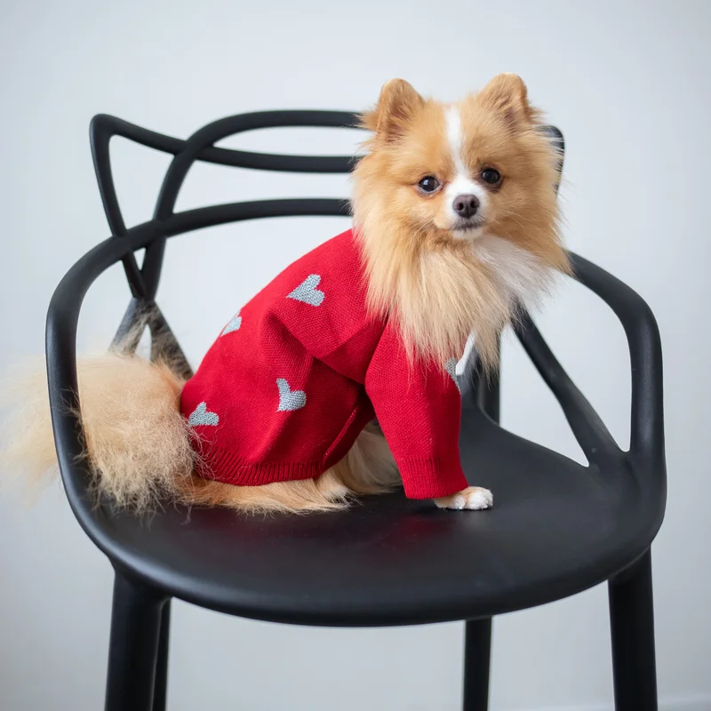 Светр в'язаний світловідбиваючий серця червоний Y-244