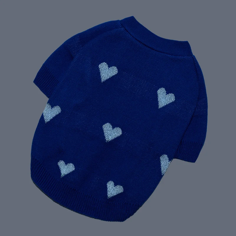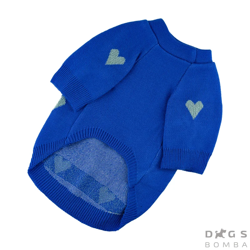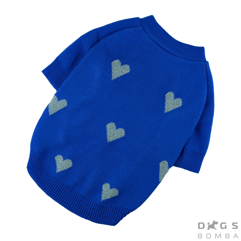 Светр в'язаний світловідбиваючий серця синій Y-245