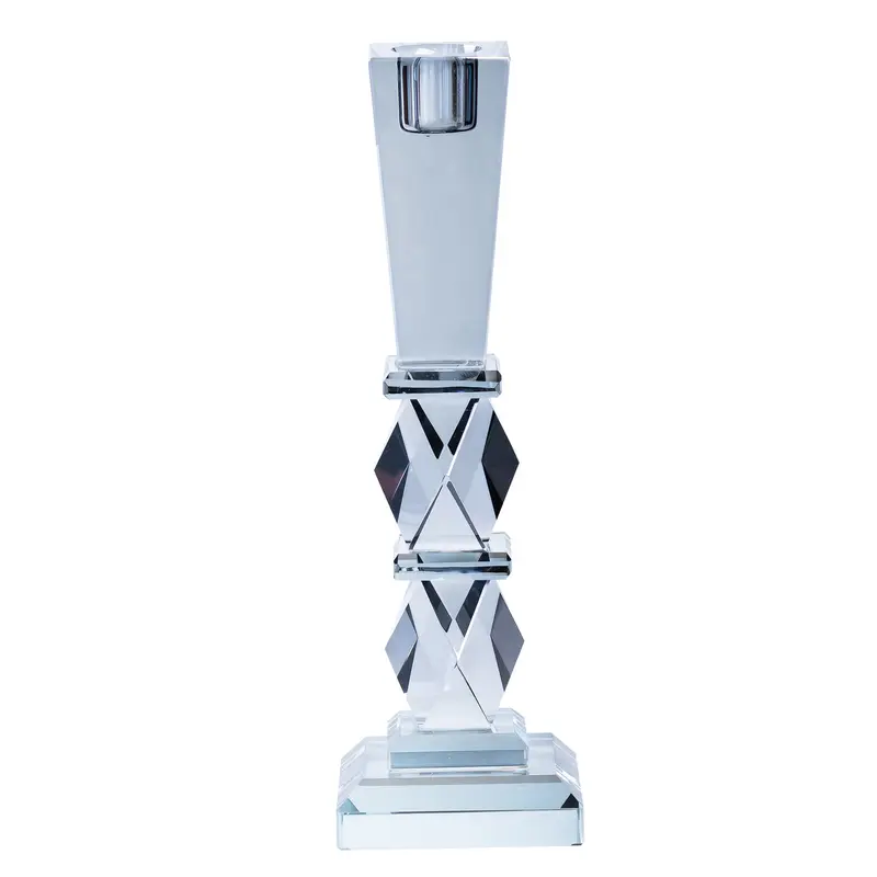 Оригінальний скляний свічник додає нотку елегантності та вишуканості будь-якому інтер'єру. Завдяки нестандартній формі й стильному дизайну, він ідеально підходить для сервірування святкового столу, прикраси камінної полиці або створення романтичної атмосфери. Свічник розроблений таким чином, що світло свічки заломлюється в кожній грані, створюючи захопливі світлові ефекти, які підкреслюють його витонченість. Виготовлений із товстого скла, свічник вирізняється високою міцністю та довговічністю. Щоб зберегти його первісний вигляд, рекомендується використовувати неабразивні засоби та м'які губки під час миття, щоб уникнути подряпин і інших пошкоджень. Характеристики: Матеріал: скло Колір: прозорий Висота: 25 см Переваги: Витончений і оригінальний дизайн Створення приголомшливих світлових ефектів Міцність і довговічність матеріалу Заходи безпеки: Використовуйте неабразивні засоби та м'які губки для миття Уникайте сильних ударів і падінь