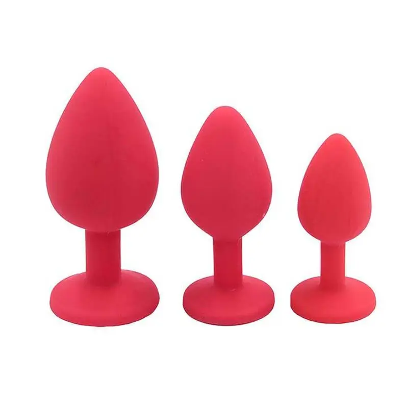 Силіконова анальна пробка з кристалом - 4.2*9.5 см - Червоний - Анальні іграшки