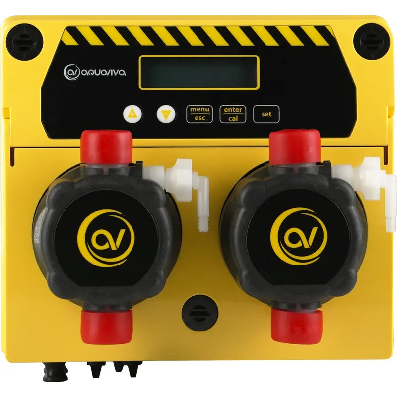 Система цифрових мембранних дозуючих насосів Aquaviva pH + Rx 5 л/год - це ідеальний варіант для точного дозування хімії в басейн без участі людини.Система автоматично контролює та регулює рівень pH та концентрацію дезінфектанту в басейнах об'ємом до 500 000 л.Пропорційний режим дозування виконується автоматично на підставі показників датчиків рН та Rx.Ручне налаштування продуктивності дозволяє дозувати будь-які реагенти з постійною швидкістю по відсотку від максимальної продуктивності.