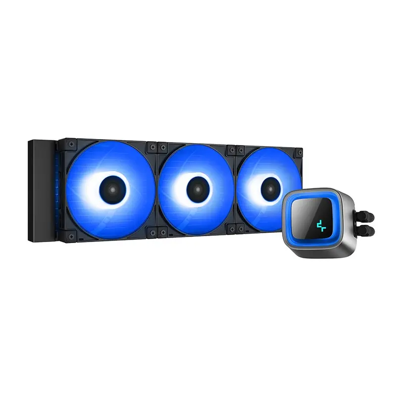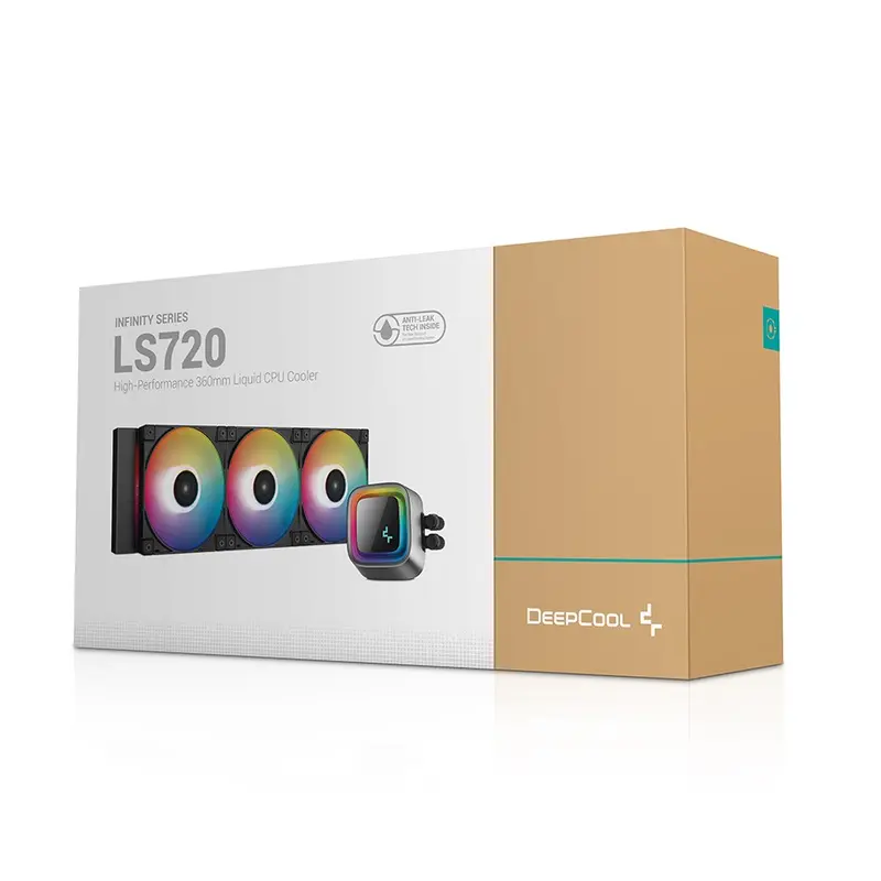 Рідинний процесорний кулер преміум-класу DeepCool LS720 забезпечує максимальну ефективність охолодження та низький рівень шуму завдяки радіатору діаметром 360 мм, трьом вентиляторам FC120 A-RGB PWM і нескінченному дзеркалу.