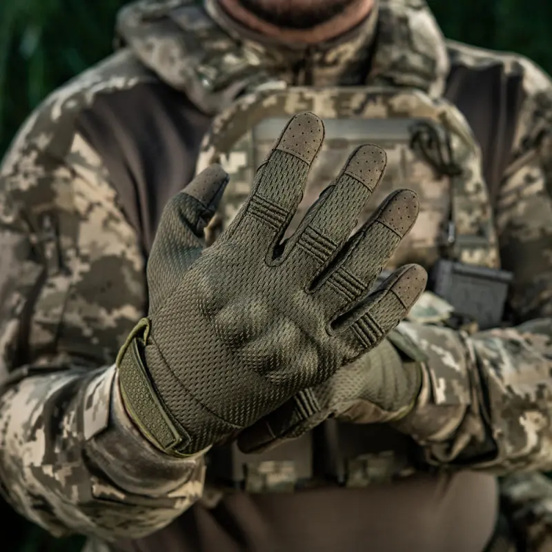 Тактичні рукавиці з інтегрованим пластиковим захистом кісточок. Виготовлені з дихаючого сітчастого матеріалу. Працюють з сенсорними екранами.
