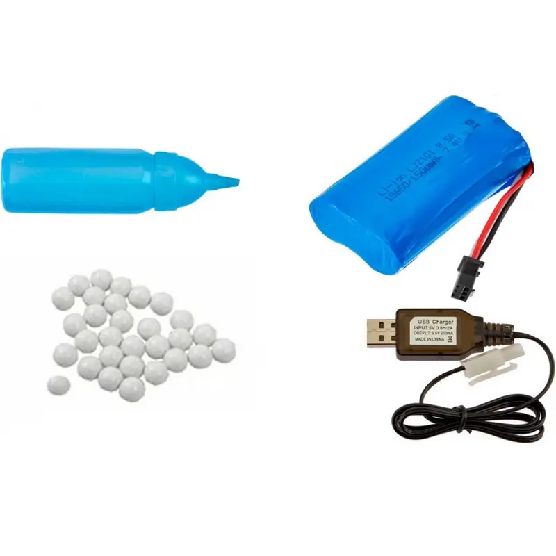 Живлення танка забезпечує акумулятор (входить в комплект поставки разом із зарядним USB-шнуром). Пульт керування живиться від трьох батарейок типу АА 1.5 В (не входять в комплект).