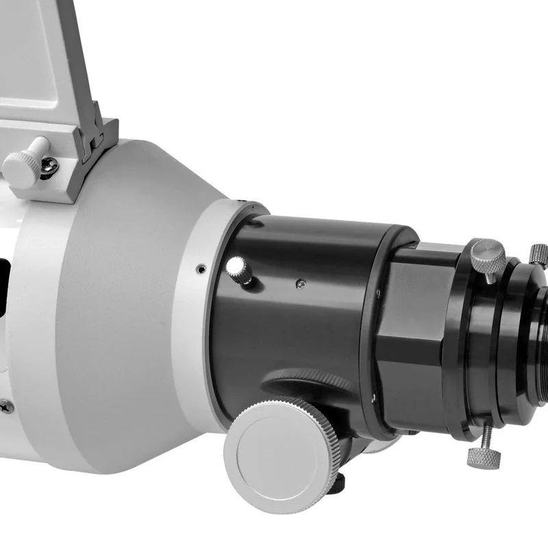 Флагманська лінійка телескопів Messier від німецького виробника Bresser відрізняється високою якістю збірки, точністю підгонки оптичних елементів та використанням тільки високоякісних матеріалів. Всі вузли, деталі, а також дзеркала телескопа виконані з високою точністю, що надає найкращі оптичні та експлуатаційні характеристики у своєму класі. Об'єктив телескопа Bresser Messier AR-127S/635 EXOS-1/EQ4 (4727637) є ахроматом з відносним отвором 1/5, завдяки чому значно збільшена світлосила. У телескопі застосована чотирилінзова оптична схема Петцвалю, що дозволяє більш ніж на 30% зменшити хроматичну аберацію і отримати ширше плоске поле зору, ніж у традиційному дволінзовому ахроматі з таким же відносним отвором. Це означає, що зображення буде більш насиченим та детальним по всьому полю зору. Відсутність у телескопі центрального екранування (порівняно з системою Ньютона) позитивно позначається на контрасті зображення під час спостережень Місяця та деталей дисків планет. Порівняно велика апертура і коротка фокусна відстань роблять цей телескоп придатним для спостережень слабких об'єктів далекого космосу: туманностей, галактик, зоряних скупчень, і навіть комет. Наявність у комплекті фірмового апертурного фільтра дозволить спостерігати за Сонцем. Широке поле зору штатного окуляра дозволить майже повністю побачити велику Галактику Андромеди із двома її супутниками. Надзвичайно красиві також і розсипи зірок у скупченнях Чумацького Шляху. Укорочена труба телескопа зручна під час транспортування. Наприклад, телескоп можна сміливо брати в заміську поїздку, туди де небо, порівняно з міським, темнішим і де набагато докладніше можна розглянути тьмяні далекі об'єкти. Найчастіше використовуваний вузол у телескопі - це фокусер і важливість надійності цього вузла переоцінити складно. Однією з останніх доробок компанії, впроваджених у даному телескопі, є новий фокусер Hexafoc з внутрішнім діаметром 2,5". Завдяки такому рішенню вдалося уникнути можливого віньєтування (обрізання) зображення при роботі з широкопольними дводюймовими окулярами. Крім того увага була приділена поліпшенню плавності ходу, та стабільності самої системи фокусування. Телескоп оснащений фокусером із посадковим діаметром під окуляри 2” (для використання окулярів стандарту 1,25” у комплекті є перехідник). Це дозволяє використовувати ширококутні окуляри, щоб отримати велике поле зору при спостереженнях протяжних об'єктів та зоряних полів. Крім того, перехідник забезпечений різьбленням Т2, що дозволяє під'єднати за допомогою Т2-кільця дзеркальний фотоапарат для зйомки в прямому фокусі, при цьому додатковий спеціальний перехідник зовсім не знадобиться. Телескоп оснащений оптичним шукачем великого діаметру. Телескоп встановлений на жорсткому монтуванні EXOS-1 - екваторіального типу. Монтування оснащене, механізмами тонких рухів по обох осях та координатними колами. Координатні кола дозволяють наводити телескоп на об'єкти з використанням системи екваторіальних координат, а завдяки наявності шукача полюса ви зможете максимально точно виставити полярну вісь монтування у напрямку полюса світу, що зведе до мінімуму неточності ведення. Це особливо важливо при спостереженнях планет із використанням високих збільшень, а також при астрофотографії. Висока якість передачі зображень гарантуєт