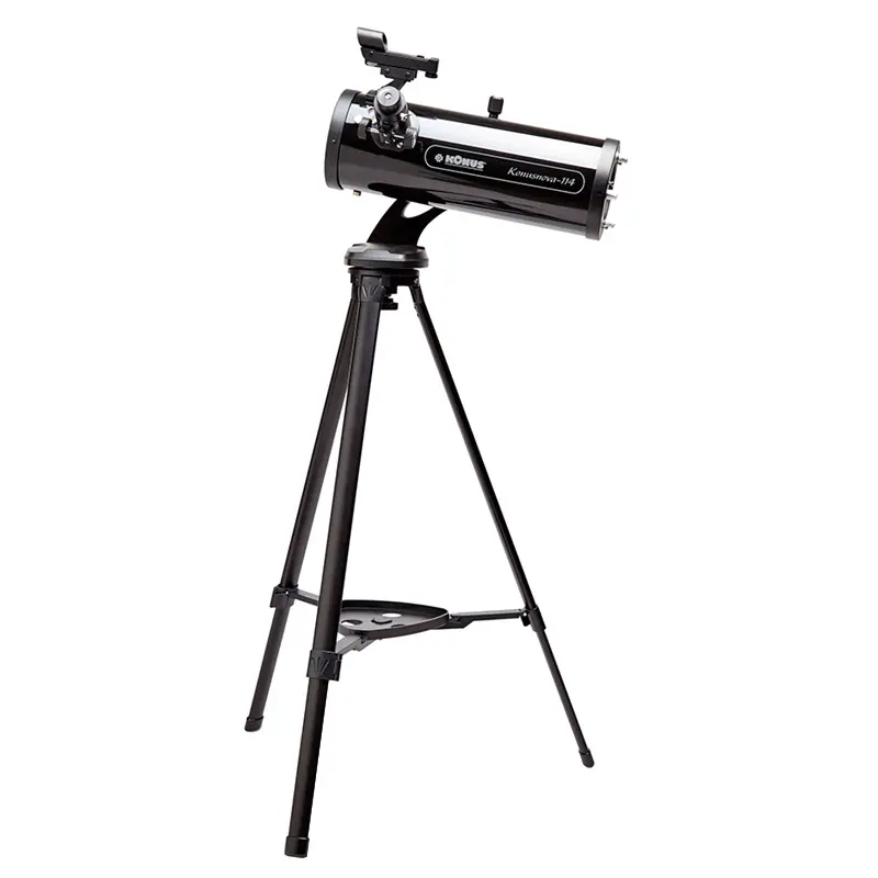 Konus KONUSNOVA-114 — это прекрасный вариант для начинающего астронома, который заинтересован в наблюдении за всеми типами астрономических объектов. Доступный по цене телескоп сочетает в себе эксклюзивный дизайн, простую в управлении альт-азимутальную монтировку, прочный регулируемый металлический штатив с лотком для аксессуаров, коллиматорный видоискатель, 2 окуляра Гюйгенса и достаточно большую апертуру, что открывает любителям космических наблюдений возможность исследовать Луну, планеты Солнечной системы, а также наблюдать за туманностями, звездными скоплениями и другими объектами глубокого космоса.