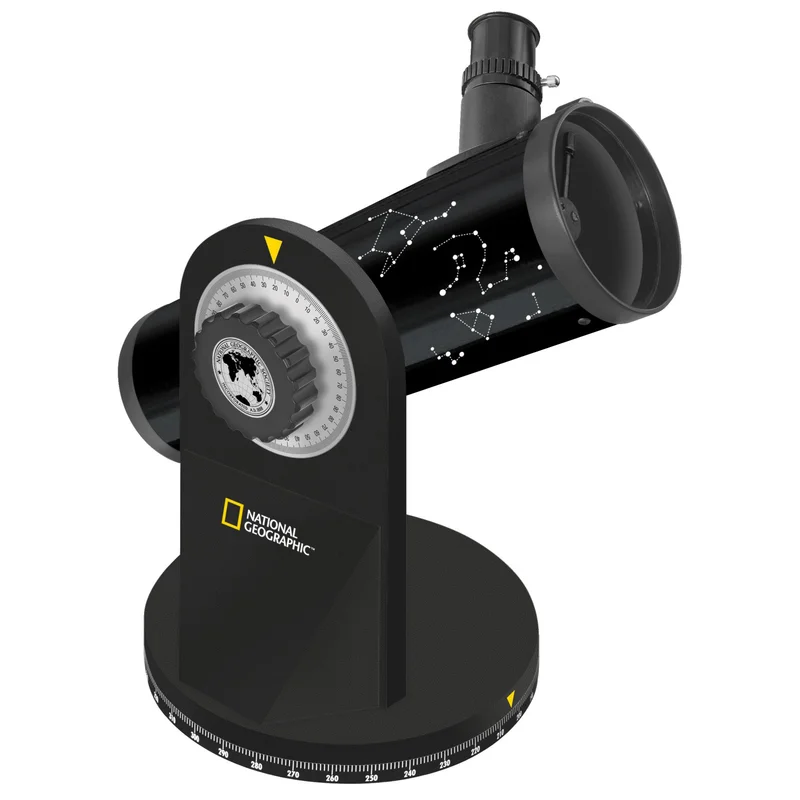 Телескоп National Geographic 76/350 Compact (9015000) компактний, потужний, цей яскравий телескоп Добсона для зірочетів надзвичайно портативний, простий у використанні і доступний за дуже розумною ціною! Цим телескопом-рефлектором легко управляти навіть новачкам, і він пропонує пряме введення у захоплюючий світ астрономії. Телескоп поставляється повністю зібраним та готовим до використання прямо з коробки. Ви можете просто поставити його на стіл, надіти один з двох окулярів, що додаються, і приступити до дослідження космосу.