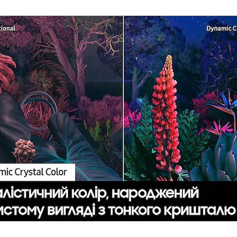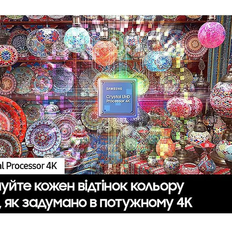 Реалістичний колір, народжений з найчистіших дрібних кристалів Пориньте в зображення завдяки одному мільярду колірних відтінків. Технологія Dynamic Crystal Color забезпечує реалістичні зміни кольору, щоб ви могли побачити навіть найдрібніші деталі. Відчуйте реалістичність відтінків кольору завдяки потужному 4K Потужне 4K масштабування забезпечує отримання роздільної здатності до 4K для улюбленого контенту. Ви також відчуєте реалістичніше передавання кольорів завдяки передовій технології кольоропередавання. Плавні рухи та чітке зображення Насолоджуйтеся чіткою картинкою та продуктивністю, оскільки вони автоматично оцінюють і балансують кадри для джерела контенту. Відчуйте реальність роздільної здатності 4K UHD Телевізор 4K UHD виходить за межі звичайного FHD завдяки в 4 рази більшій кількості точок, пропонуючи вашим очам такі контрастні та чіткі зображення, на які вони заслуговують. Тепер ви можете бачити навіть найменші деталі сцени. Розрізняйте світлі та темні відтінки в кожній сцені. Технологія High Dynamic Range (HDR) збільшує діапазон колірного спектра вашого телевізора, щоб ви могли насолоджуватися величезною кількістю кольорів і всіма візуальними деталями навіть у найтемніших сценах. Гармонійне поєднання телевізора та саундбара Оточіть себе гармонійним звучанням телевізора та саундбару. Q-Symphony дає змогу відтворювати звук одночасно на динаміках телевізора та саундбара для отримання найкращого ефекту об’ємного звучання. Витончений і тонкий, як ніколи раніше Crystal UHD має надзвичайно тонкий профіль, що дає змогу телевізору легко вписуватися у ваш інтер’єр, забезпечуючи мінімалістичний вигляд і підкреслюючи його елегантність. Позбавтеся від безладу Тримайте кабелі в порядку і приховуйте їх, зменшуючи безлад і зберігаючи бездоганний вигляд телевізора. Щільне прилягання до стіни Досягніть мінімалістичного зовнішнього вигляду інтер’єру, якого ви завжди хотіли. Завдяки простому в установці настінному кріпленню Slim Fit, ваш телевізор буде щільно прилягати до стіни, що допоможе йому природно вписатися у ваш простір. Працюйте і вчіться з дому Насолоджуйтеся кожною можливістю! Легко підключайте ваш ПК, ноутбук і мобільний телефон до вашого телевізора!