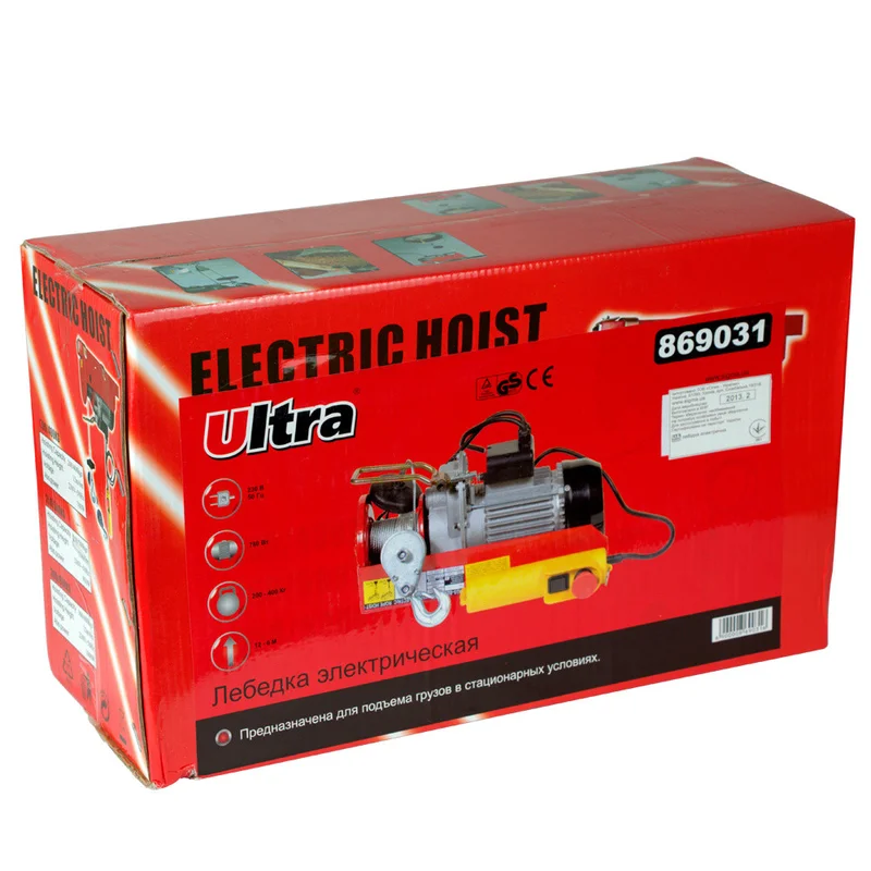 Тельфер електр 880Вт 200-400кг 6/12м 220В ULTRA ultra 6125022