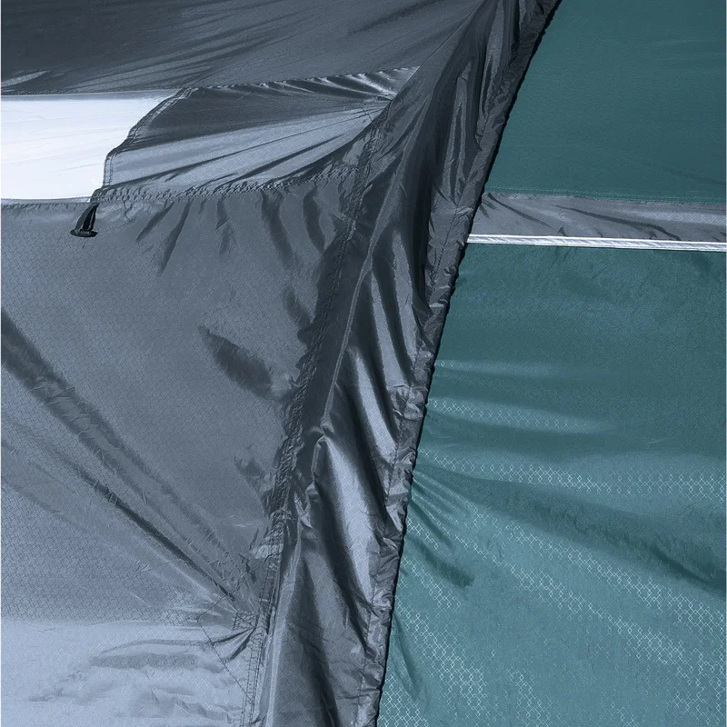 Тент Ferrino Canopy 5 Places Dark Grey (91221LDD) призначений для збільшення житлового простору великих кемпінгових наметів тунельного типу та підходить не тільки до наметів Ferrino, але й до інших наметів аналогічної конструкції, ширини і висоти. Тент має універсальне кріплення до намету, оснащений двоточковими відтяжками для підвищення стабільності. Матеріал має водозахисні та водовідштовхувальні властивості, але насамперед призначення тенту - створення тіні. Така приставна веранда може бути використана для облаштування кемпінгової кухні або зони денного відпочинку.