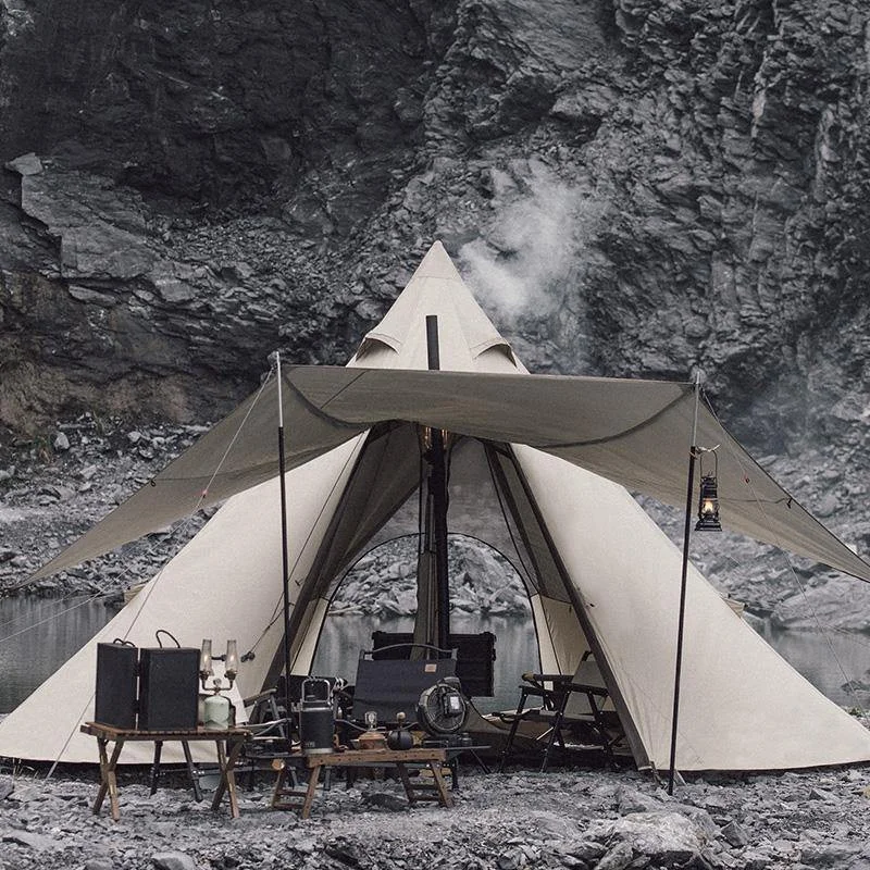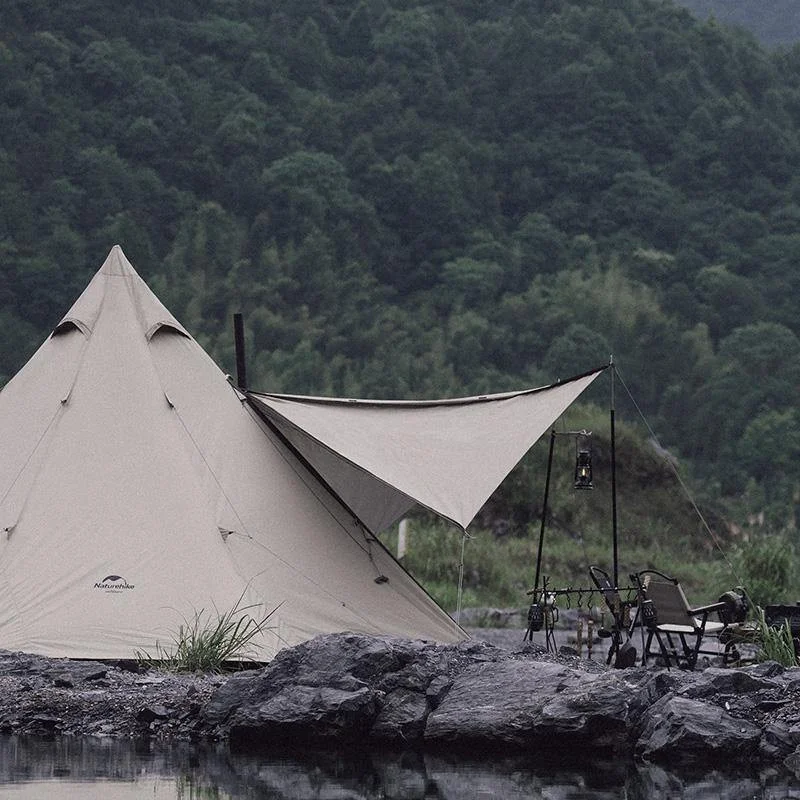 Тент-намет для кемпінгу Naturehike Ranch Pyramid NH20ZP014, 150D, 482*482*280 см, золотий (з п'ятьма стійками)