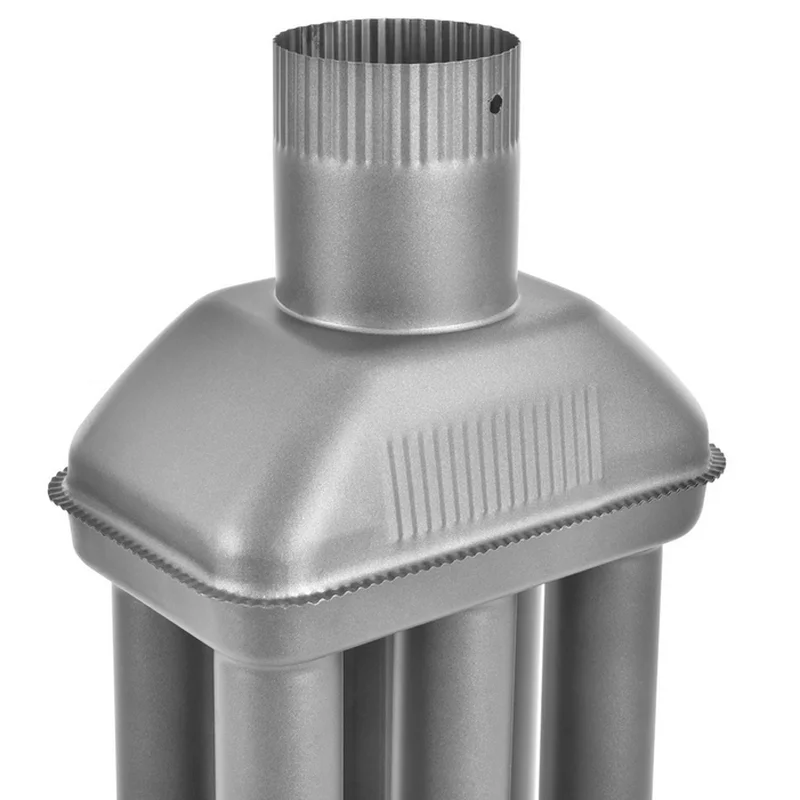 Теплообмінник 120/1000 мм. Тепло-повітряний обмінник може збільшити ефективність печі до 30%. Труба димоходу оброблена чорною термостійкою фарбою.