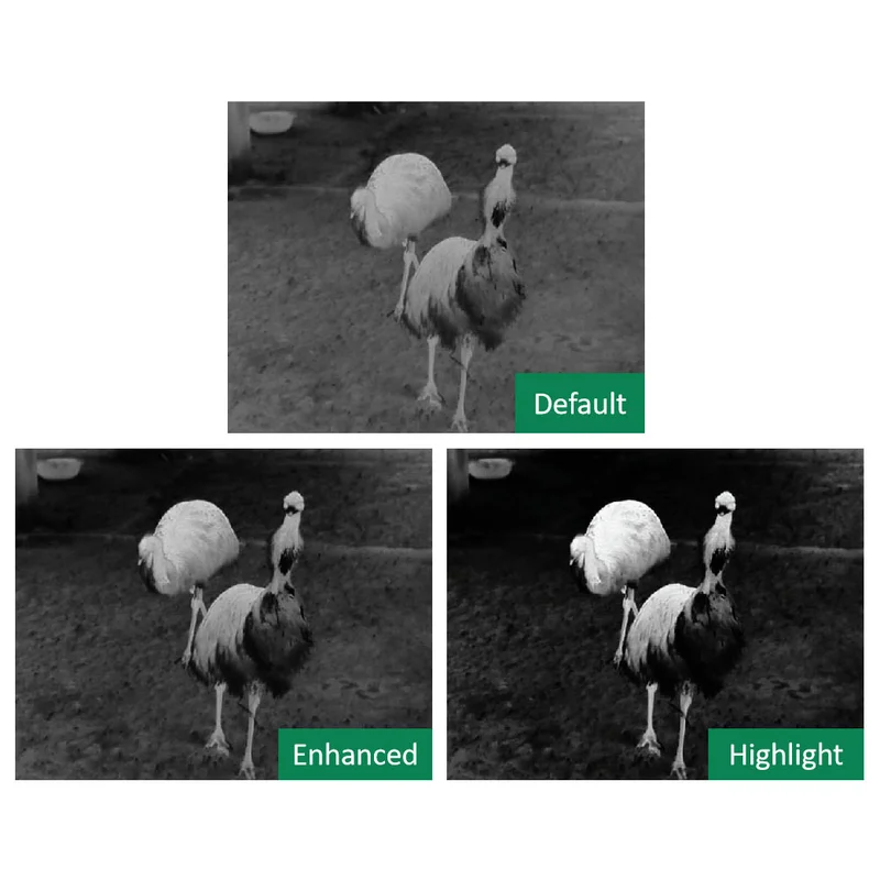 Помимо предустановленных цветовых палитр, пользователь может выбирать еще режимы контрастности изображения: Enhanced / Highlight / Default. Смена режимов выполняется простым нажатием на кнопку, позволяя вам быстро подобрать подходящий вариант.