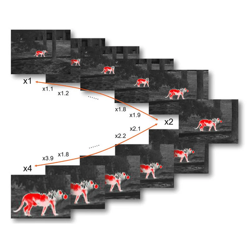 В тепловизоре предусмотрена функция программного дальномера, основанная на уже известных ростовых значениях цели. Используйте их, чтобы с высокой точностью определить дистанцию до объекта.