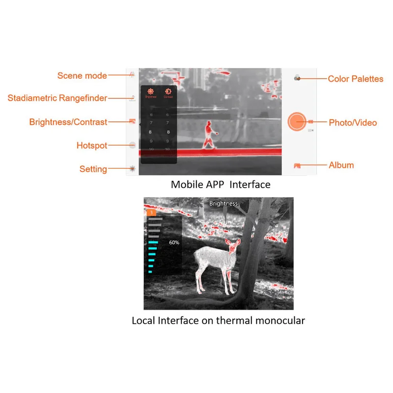 Все термальные монокуляры серии TrackIR поддерживают работу с мобильными устройствами посредством беспроводной Wi-Fi сети. Для этого потребуется установка фирменного приложения на свой смартфон/планшет. Пользователь может удаленно управлять тепловизором, транслировать видео в реальном времени, а также передавать медиа файлы со встроенного накопителя себе на смартфон.