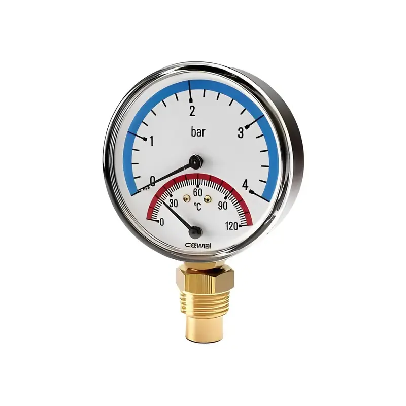 Термоманометр Cewal, 6 бар, вертикальный, диам. 80мм, 0 - 120 °C, Италия