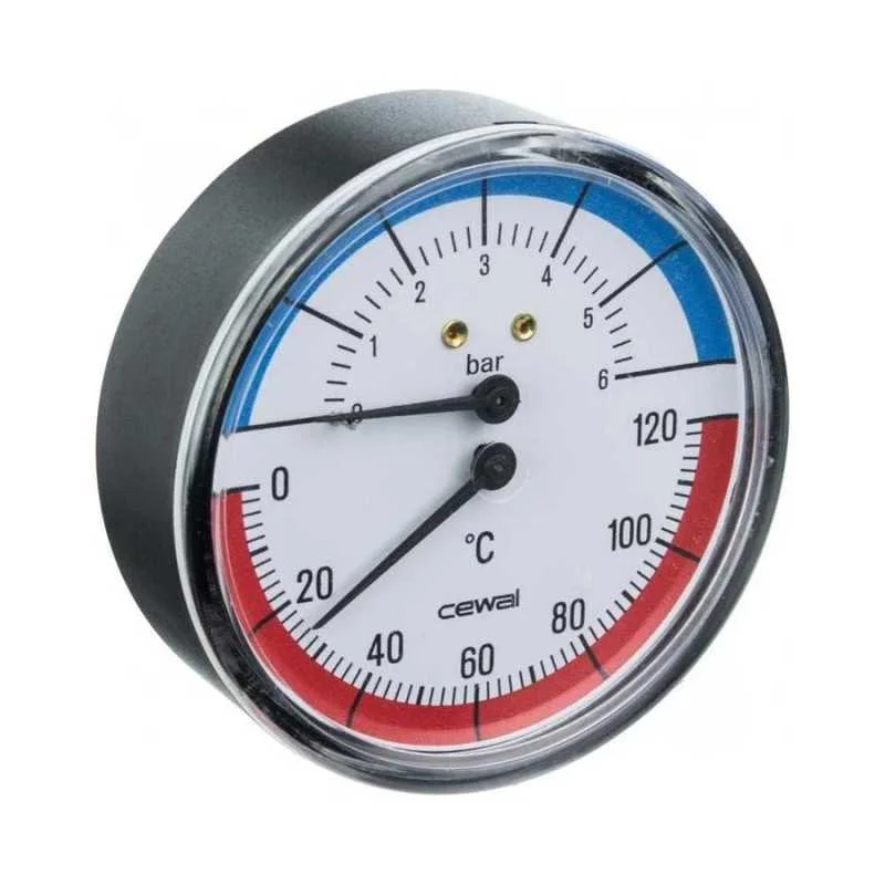 Термоманометр Cewal, 6 бар, горизонтальный, диам. 80мм, 0 - 120 °C, Италия