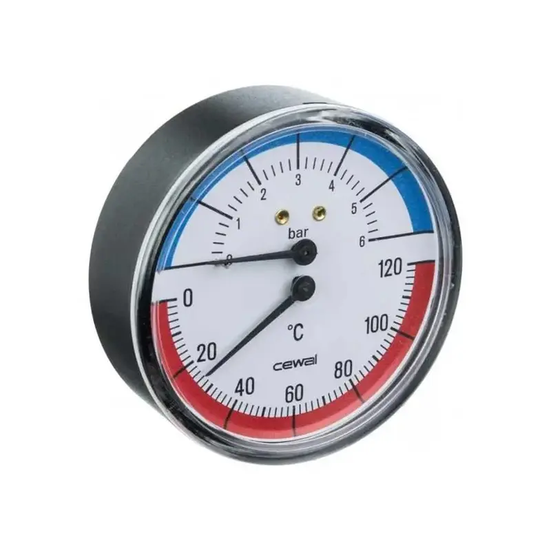 Термоманометр Cewal, 6 бар, горизонтальный, диам. 80мм, 0 - 120 °C, Италия