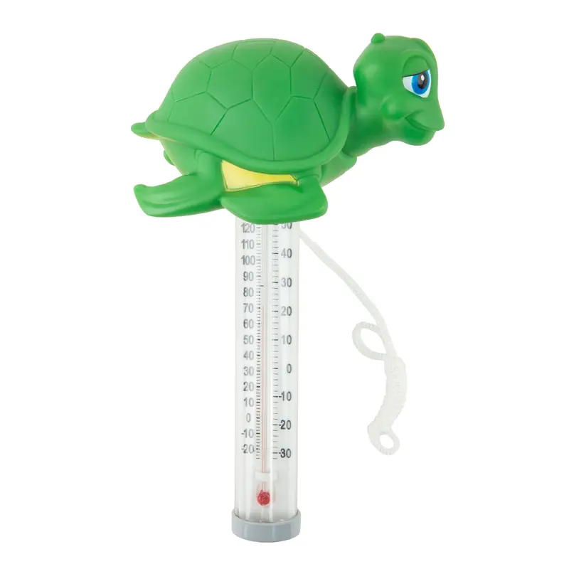 Плаваючий термометр іграшка Kokido K785BU/6P Черепаха для басейну. Виготовлений з нешкідливого полімеру, не містить скла, ртуті або гострих частин. Має дві шкали - Цельсія і Фаренгейта. Обладнаний плавучим шнурком, який кріпиться до стінки басейну.