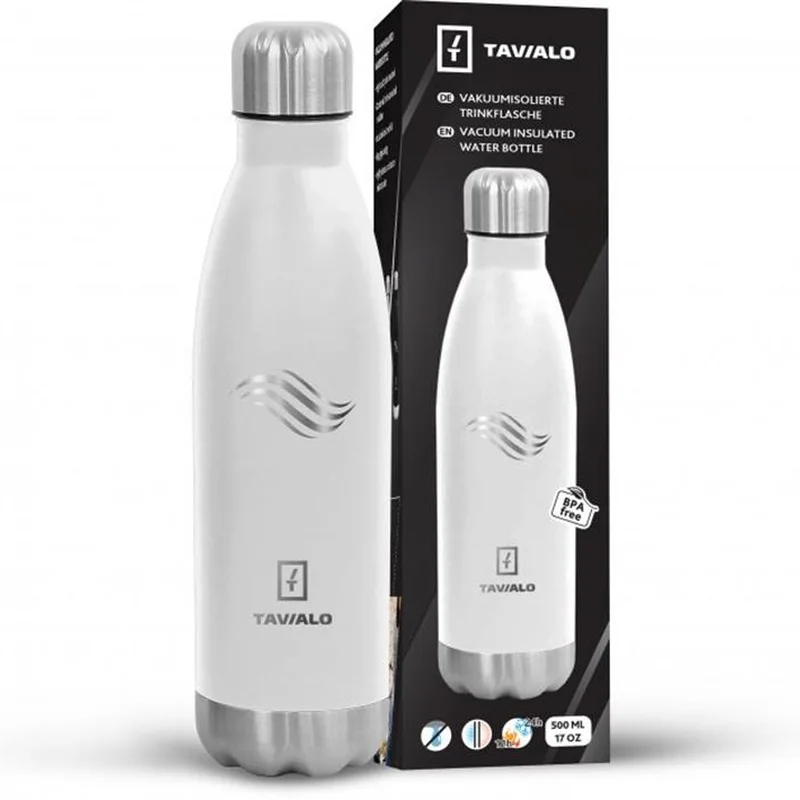Термопляшка Tavialo: Двостінна вакуумна пляшка з неіржавкої сталі Температура рідини 98 С Можливість збереження тепла до 12 годин Можливість збереження холоду до 24 годин Результати можуть відрізнятися залежно від температури довкілля Корпус: нержавіюча сталь Кришка: нержавіюча сталь/пластик