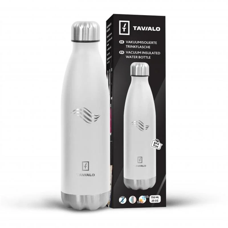 Термопляшка Tavialo: Двостінна вакуумна пляшка з неіржавкої сталі Температура рідини 98 С Можливість збереження тепла до 12 годин Можливість збереження холоду до 24 годин Результати можуть відрізнятися залежно від температури довкілля Корпус: нержавіюча сталь Кришка: нержавіюча сталь/пластик