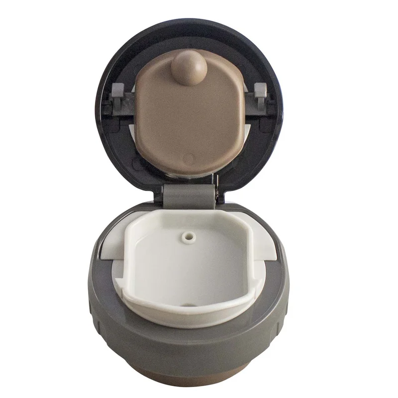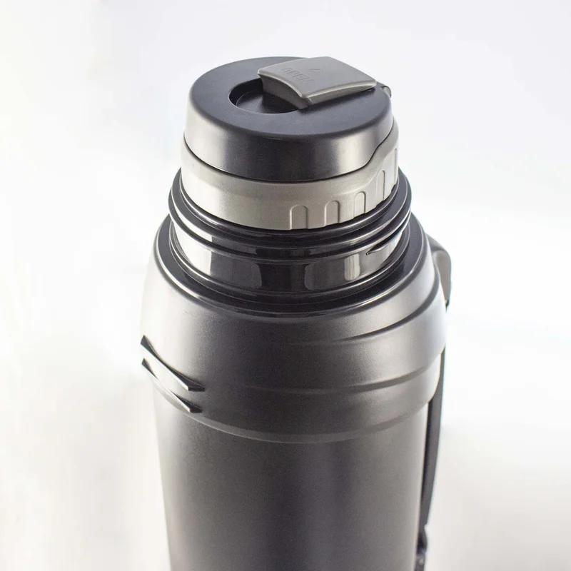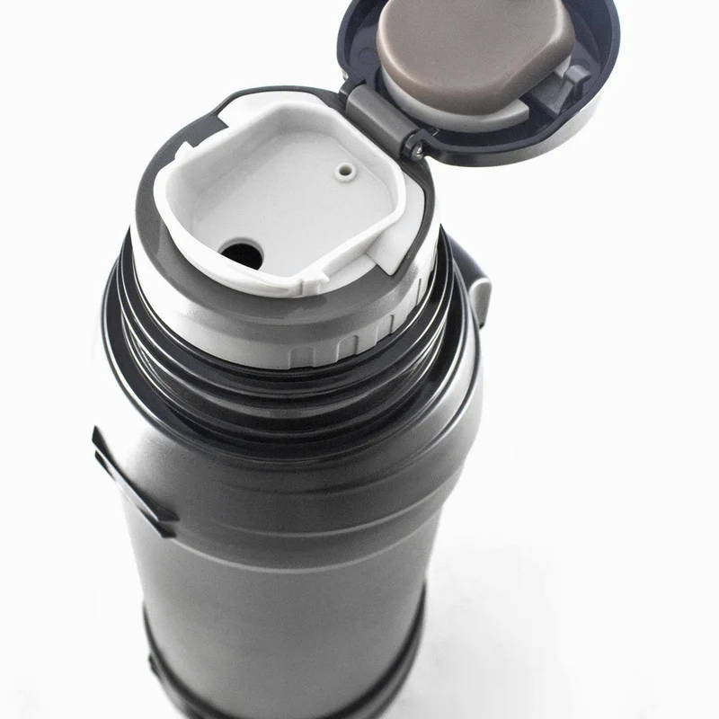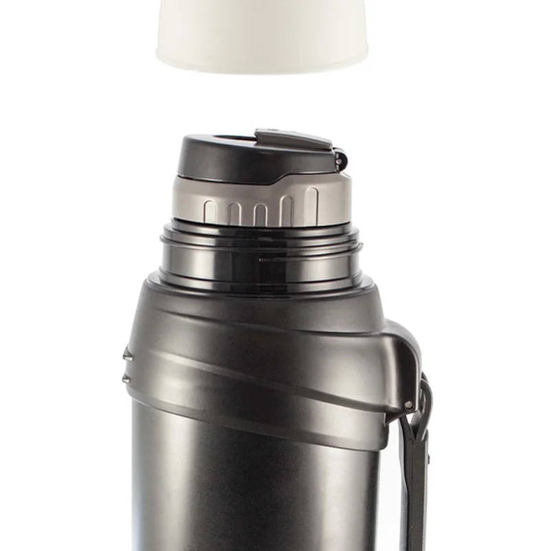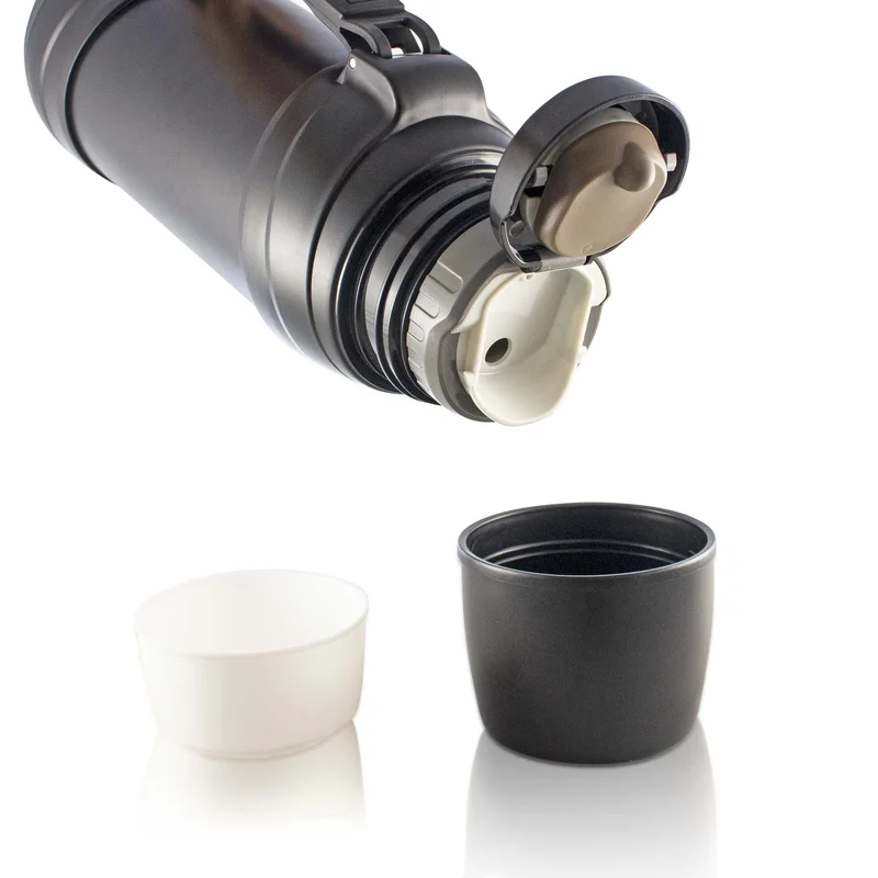 Міцності виробу додають захисні пластикові бампери на корпусі. Термос оснащений прогумованою ручкою та знімним ремінцем-подовжувачем для зручного транспортування. Також укомплектований 2 чашками - пластиковою в додаток до повнорозмірної нержавіючої, що виконує роль кришки.