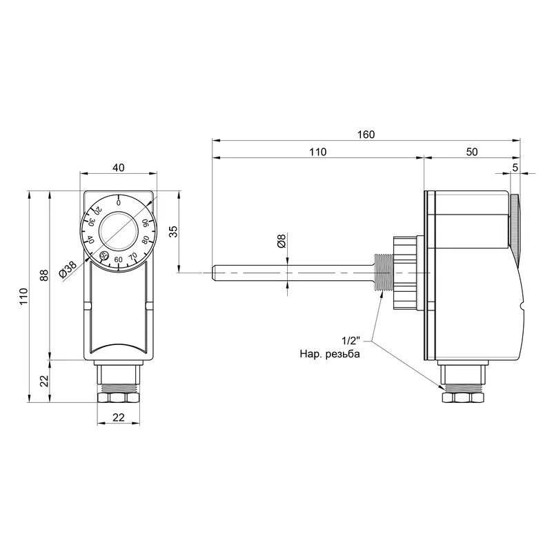 Термостат SD Plus погружной 1/2" SD348 призначений для вимірювання безпосередньої температури теплоносія. Датчик може вимірювати і контролювати температуру від 0 до 90 градусів Цельсія.