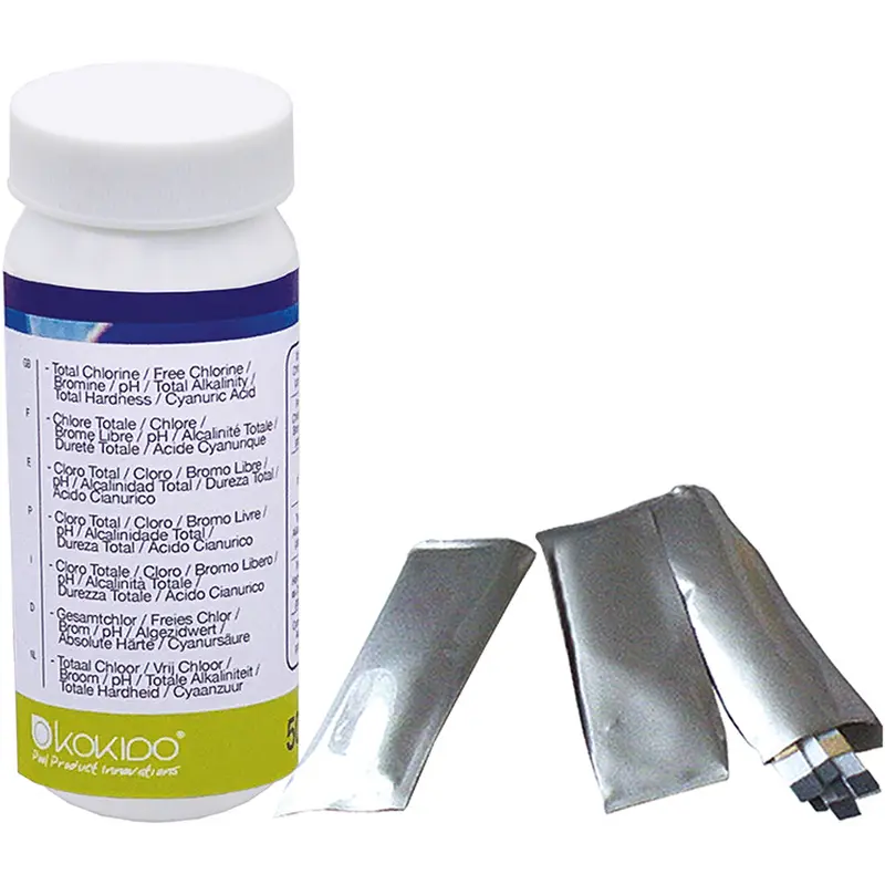 Тест-смужки Kokido 6-в-1 – професійний набір для експрес-аналізу води в басейнах та спа. Один тест одночасно визначає 6 показників. Результат готовий вже за 15 секунд – просто занурте смужку та порівняйте колір зі шкалою на флаконі. Герметична упаковка гарантує точність реагентів протягом усього терміну придатності.