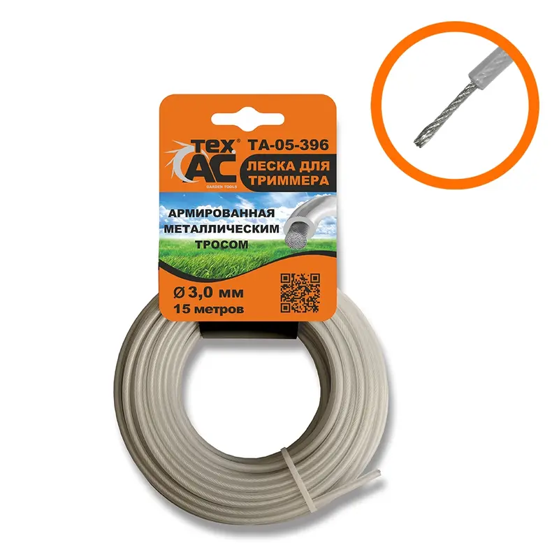 Леска для триммера армированная металлическим тросом Тех.АС ТА-05-396