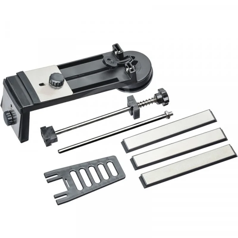 Настільна точильна система Risam Fix Angle являє собою повноцінний набір, призначений для заточування ножів. Ключовою перевагою даної точильної системи є можливість зміни кута заточування - від 20 до 60 градусів. У наборі є точильні алмазні камені зернистістю 240, 600 і 1000 грит.