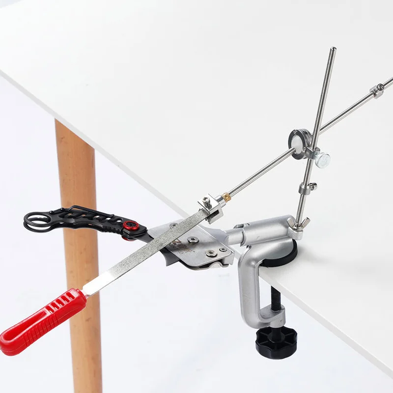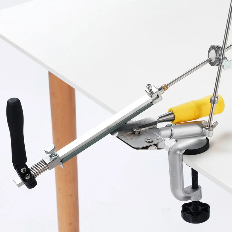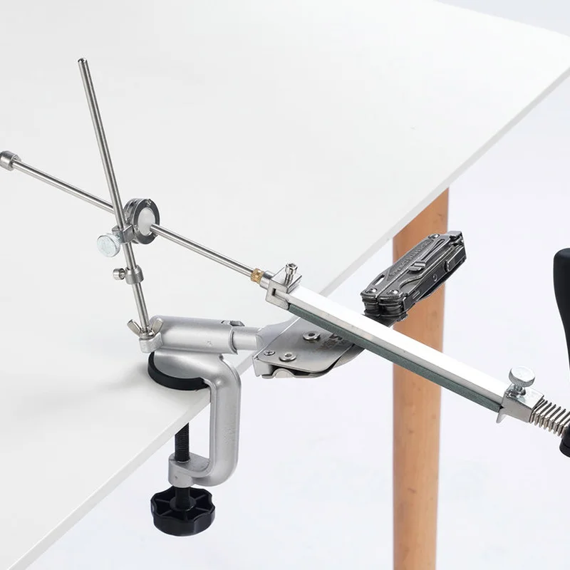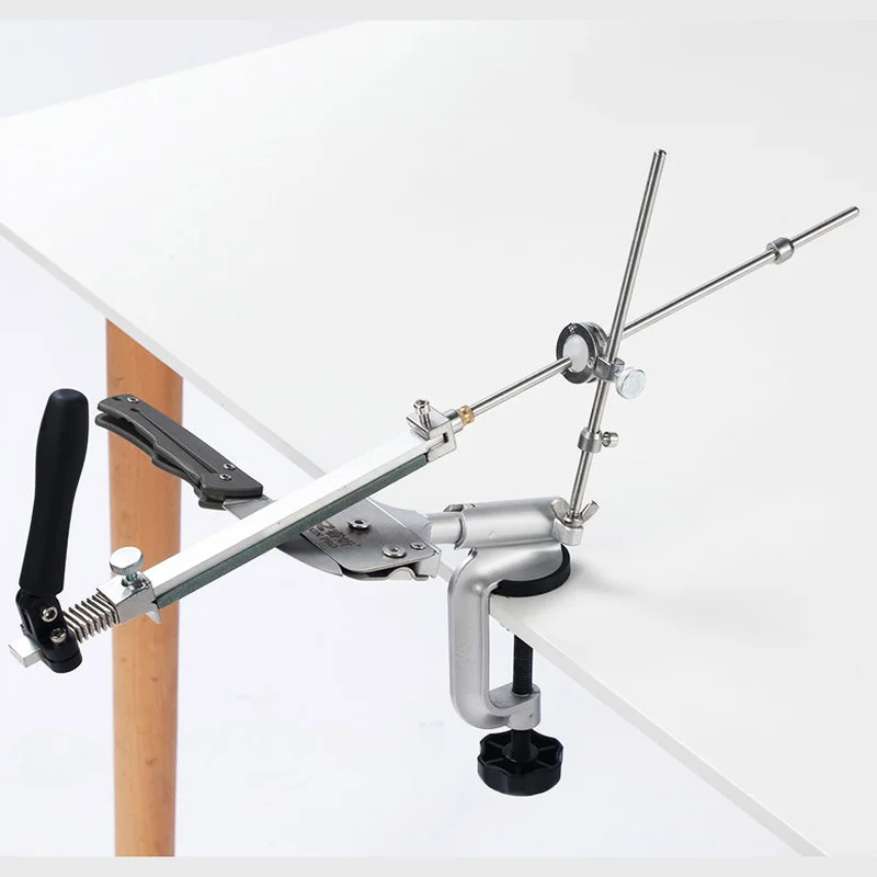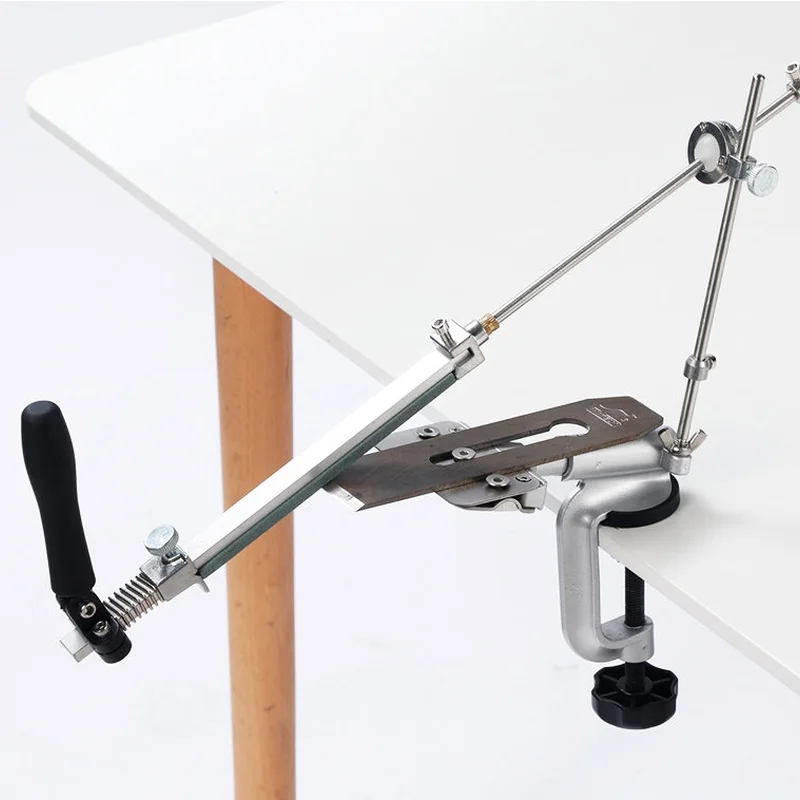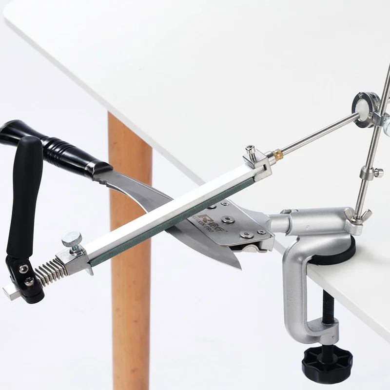 Модель Ruixin PRO IV RX-008 — це нова модель "клона" на відому точило Edge Pro. Вона повністю виконана з металу, нове 4 покоління з нержавійки + алюмінієвий сплав. Підстава точила можна прикрутити до стільниці лещатами, які йдуть в комплекті. Точильний верстат збирається з декількох деталей, тому в розібраному вигляді він дуже компактний і зручний для транспортування. В комплект входить три точильних каменю, кожен з яких закріплений на пластиковій підкладці. Можна досить швидко закріпити на направляючої і по черзі змінювати для досягнення найкращого результату. Зернистість цих каменів складає 120, 320, 600 і 1500 грит. Виробники рекомендують заточувати лезо плавними рухами «від себе», не натискаючи на клинок до появи задирки. Крім ножів, з допомогою Ruixin PRO IV можна заточити ножиці, будівельні або сільськогосподарські інструменти, а також інші предмети, що потребують такого догляду. Кут заточування кожен користувач може вибрати самостійно, завдяки чому вдається якісно заточити ножі різного призначення: товсті мисливські, туристичні або найбільш тонкі філейні.
